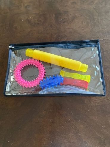 It is a thoughtfully curated combination of toys and items that can be used to calm a child’s sensory systems, help with teaching and practicing self-regulation strategies and co-regulation with caregivers, and work on fine, visual, and gross motor skills.
